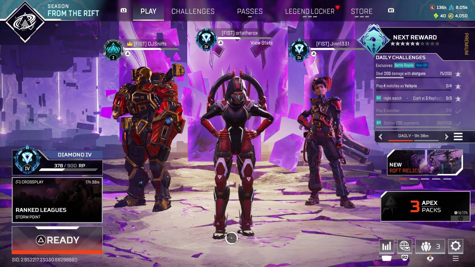 Billy Ford, Ollie (who I was introduced to via Apex) and I play in an Apex game mode called “Ranked” which can be simplified as: everyone playing has stats tracked and compared against each other, wins and losses matter in a semi-permanent way.