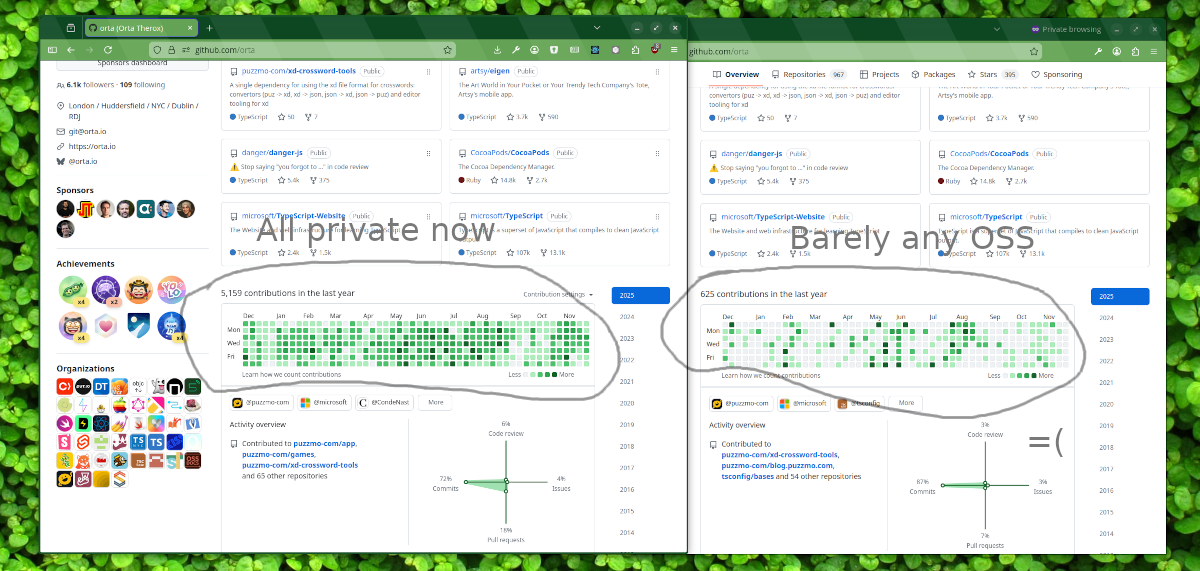 I really do mean chilling out too, the first year of working on Puzmo in Dublin (2022) is possibly the calmest period I’ve had in a decade or so. I couldn’t do Open Source, I didn’t have meetups/conferences, I didn’t have things to write on Twitter and so it gave a lot of time for long walks in the park, tending to houseplants, learning to skateboard, baking, trying out bouldering, reading way more books than normal and I tried video games outside of my usual genres.